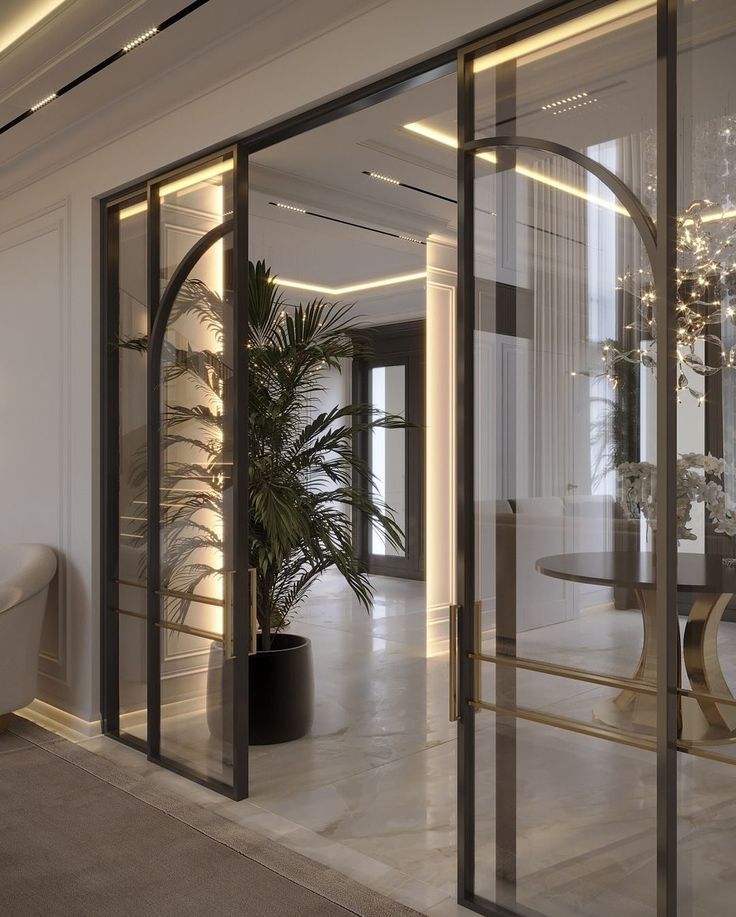 Gương lớn hoặc vách ngăn bằng kính có khả năng phản chiếu ánh sáng và nhân đôi không gian thị giác, giúp căn hộ trở nên thoáng và sâu hơn.